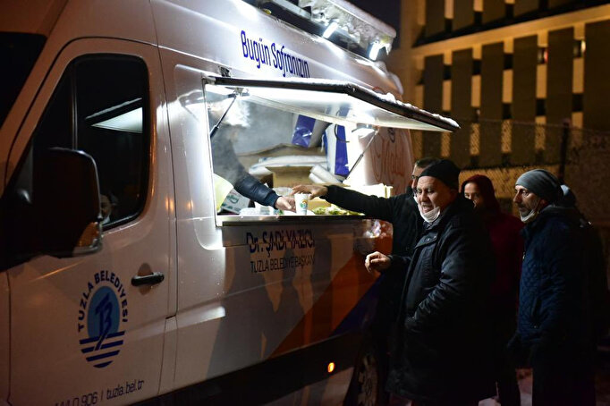 Tuzla'da da vatandaşlara çorba ve sandviç ikramında bulunuldu. Kar küreme, tuzlama çalışmaları ara ve ana caddelerde aralıksız yapıldı.