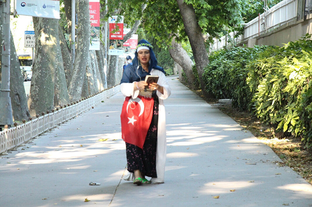 - Kadından şüphelenen vatandaşların ihbarı üzerine olay yerine çok sayıda polis ekibi sevk edildi. Kısa sürede olay yerine gelen polis, yolu araç ve yaya trafiğine kapattıktan sonra kadına ayağa kalkması ve ellerini yukarı kaldırması ikazında bulundu.
