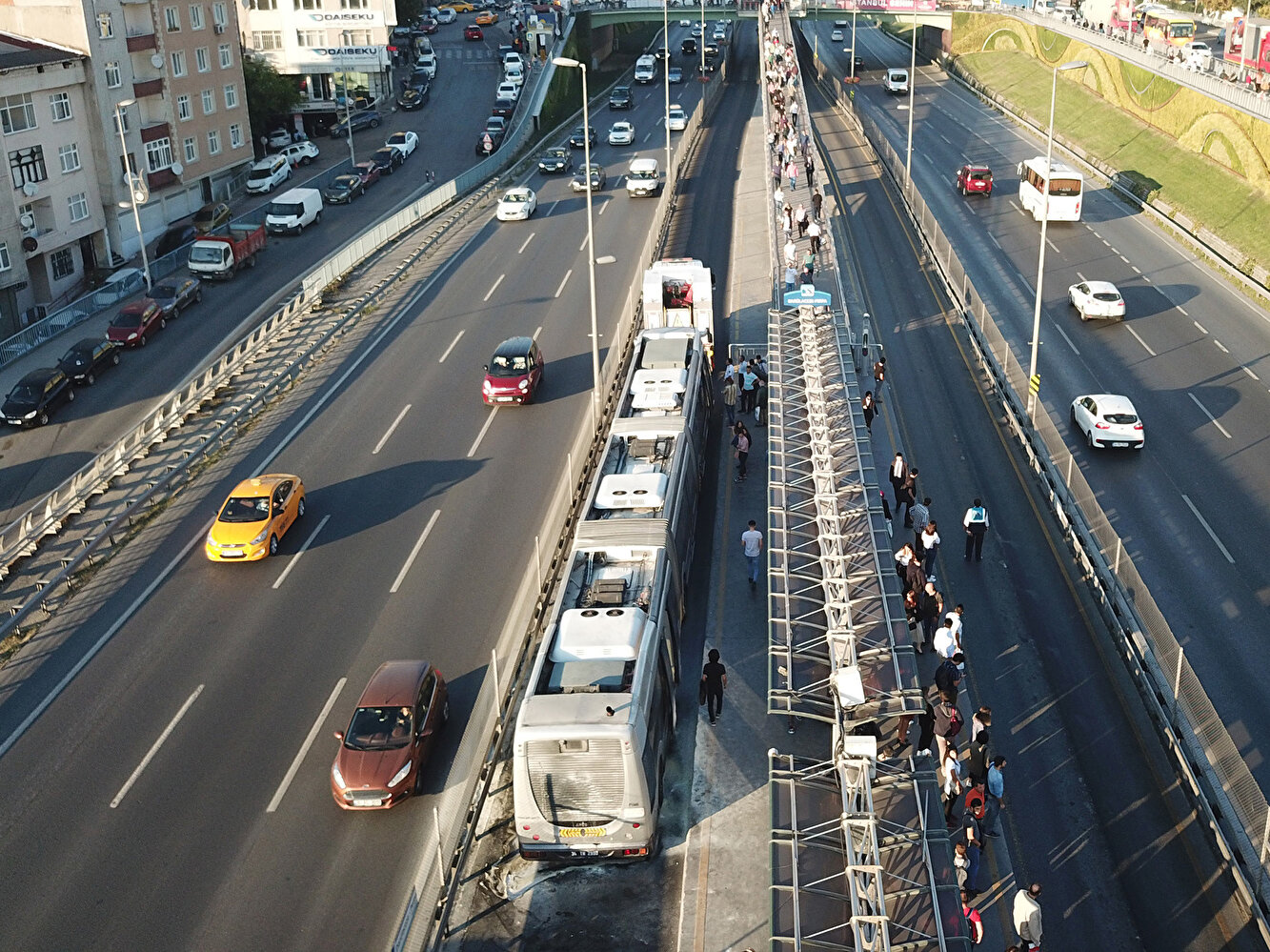 İstanbul'da Darülaceze durağında bir metrobüsün motor kısmında yangın çıktı. Yangın kısa sürede söndürüldü. Ancak metrobüs seferlerinde aksama yaşandı.