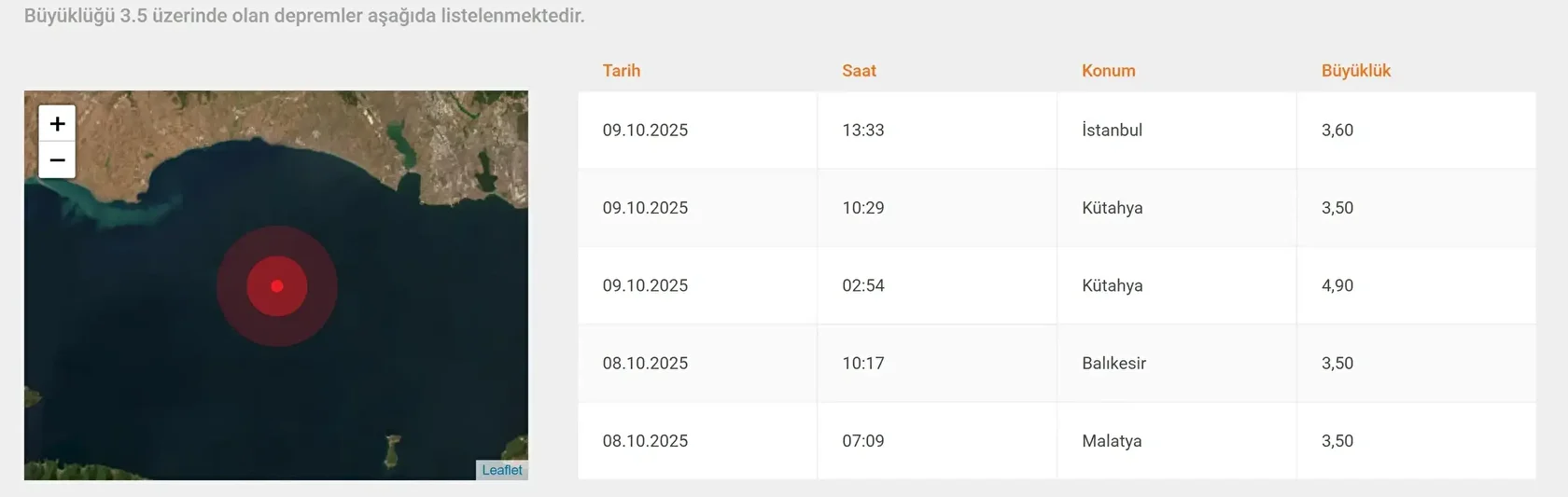 AFAD, Marmara Denizi'nde 3.6 büyüklüğünde bir deprem meydana geldiğini duyurdu. Silivri açıklarında, 9,9 kilometre derinlikte meydana gelen sarsıntı İstanbul'da da hissedildi.