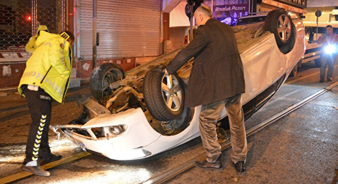 Ehliyeti olmayan otomobil sürücüsünü polis ekipleri, bir süre boyunca kovalamaya devam etti. Kovalamaca sonunda otomobil tramvay yolunda takla atarak durabildi. Kaza sebebiyle araç içinde bir kişi sıkıştı. Bu sırada otomobilde bulunan diğer kişide kaçmaya çalıştı.