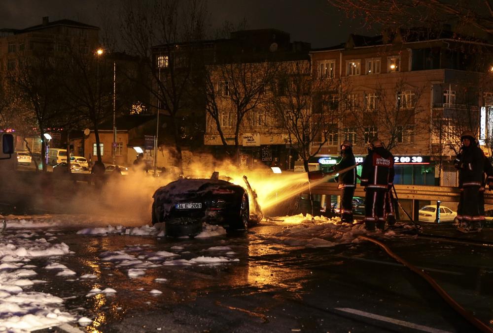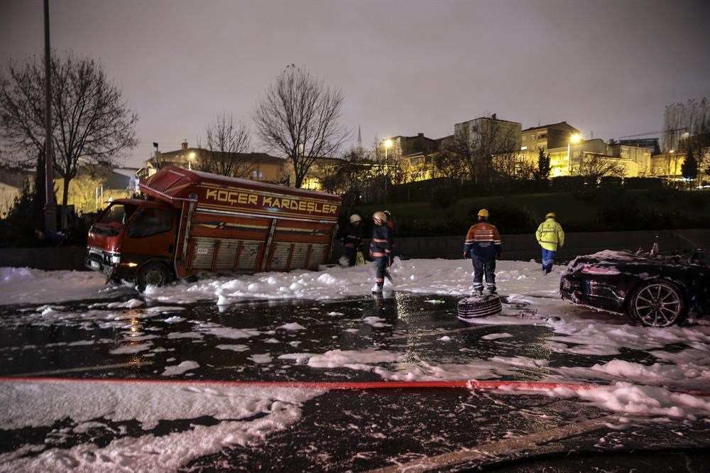 TEM Otoyolu O-3 bağlantı yolu Esenler Atışalanı mevkiinde aşırı süratli olduğu lüks bir otomobil, seyir halindeki sebze yüklü kapalı kasa kamyonete arkadan çarptı. Çarpma sonucu motoru ve tüm parçaları koparak etrafa saçılan lüks araç alev alev yandı. 1’si ağır 4 kişi yaralandığı kazada, sebzelerin yola saçıldığı bağlantı yolu saatlerce ulaşıma kapandı.