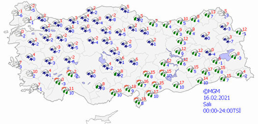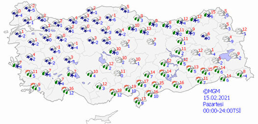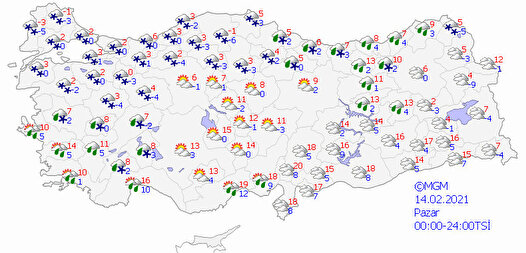 - Sibirya kökenli soğuk hava dalgasının önümüzdeki hafta da etkili olmaya devam edeceği, 0 derecenin altına gerilemesi beklenen dondurucu soğuklar ile birlikte kuvvetli kar yağışı geçişlerinin yaşanacağı tahmin ediliyor.