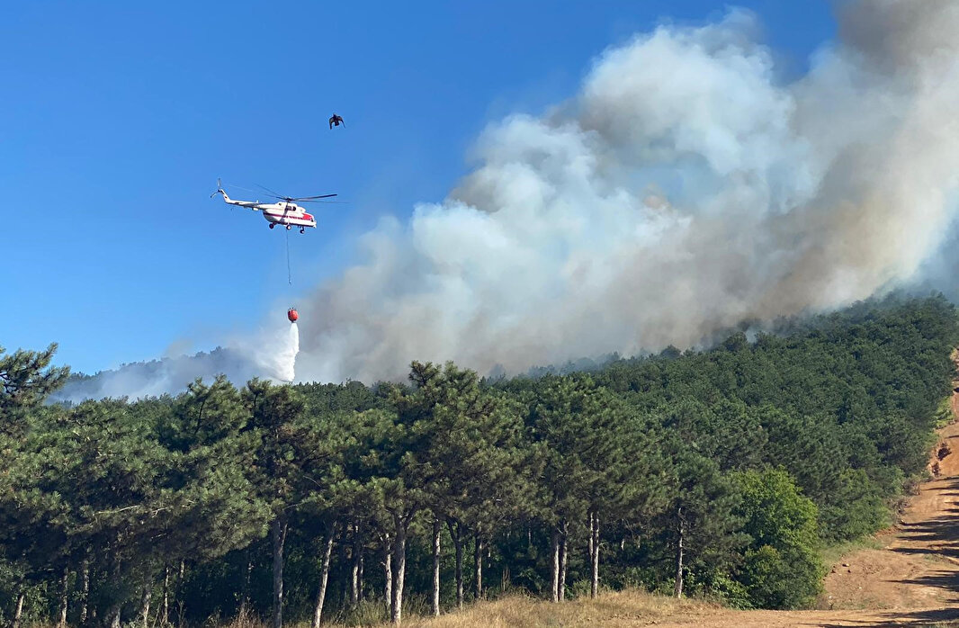 Ayrıca orman itfaiyeleri de yangına müdahale etmek için geldi. İtfaiye ekipleri müdahalede yetersiz kalınca olay yerine yangın helikopteri çağrıldı. Ekiplerin havadan ve yerden müdahalesi sürüyor.