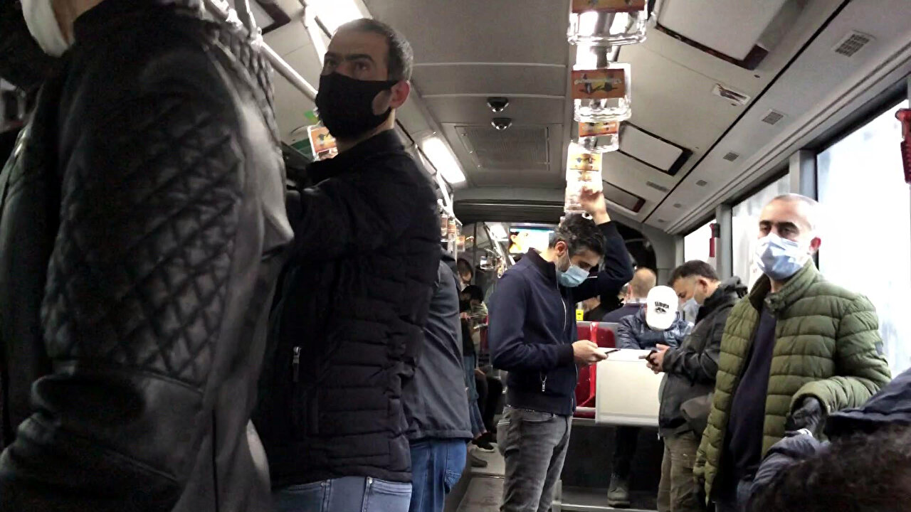 Dünya ve Türkiye'de koronavirüs tehlikesi sürerken İstanbul'daki toplu taşıma araçlarında bu sabah yoğunluk dikkat çekti. Toplu taşıma araçlarında özellikle kapı önlerinde sosyal mesafeye uyulmadığı göze çarparken, Yenikapı yönündeki yolculukta ayakta yolcu sayısı koronavirüs günleri öncesini aratmadı.