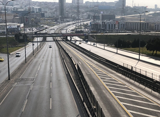 Her gün binlerce yolcunun akın ettiği Yenibosna metrobüs durağında ise kimsenin olmaması dikkatlerden kaçmadı. Karayolunda ise araç geçişlerinin oldukça az olduğu gözlendi. Normal zamanlarda trafik yoğunluğunun yaşandığı boğaz köprüleri, E-5 ve TEM otoyolunun boş olduğu görüldü. Boş yollar havadan drone ile de görüntülendi.