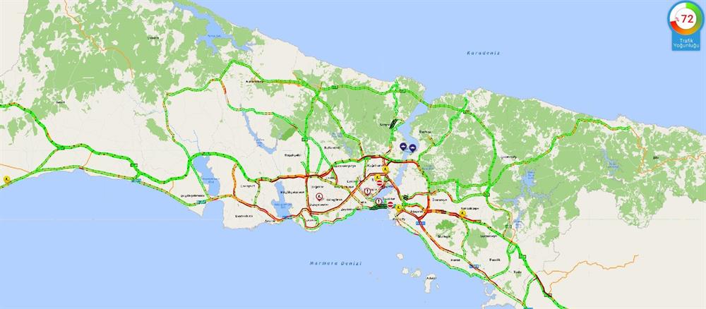 Etkili olan yağış ve iş çıkışı olması nedeniyle trafik yoğunluğu yüzde 72 seviyelerine kadar çıktı.