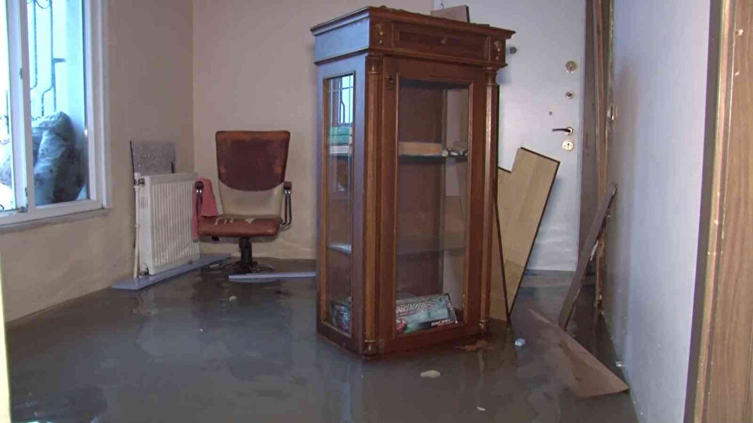 Alt katlardaki dairelere sular doldu. Sokaktakiler suya gömülen motosikleti kurtarmaya çalıştı.