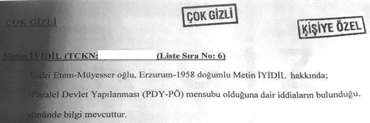 Skandal bir kararla tahliye edildikten sonra yeniden tutuklanan eski korgeneral Metin İyidil hakkındaki MİT belgesine ulaşıldı. İstinaf mahkemesinin ‘soyut’ bulduğu 23 Haziran 2015 tarihli belgede, “Paralel Devlet Yapılanması (PDY-PÖ) mensubu olduğuna dair iddiaların bulunduğu yönünde bilgi mevcuttur” deniliyor.