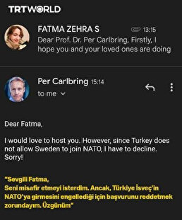 Aldığı cevap karşısında büyük bir şok yaşayan Türk öğrenci Fatma, TRT World'e "Bu cevabı aldıktan sonra şoke oldum. Bunu sindirmem uzun zamanımı aldı" açıklamasında bulundu.