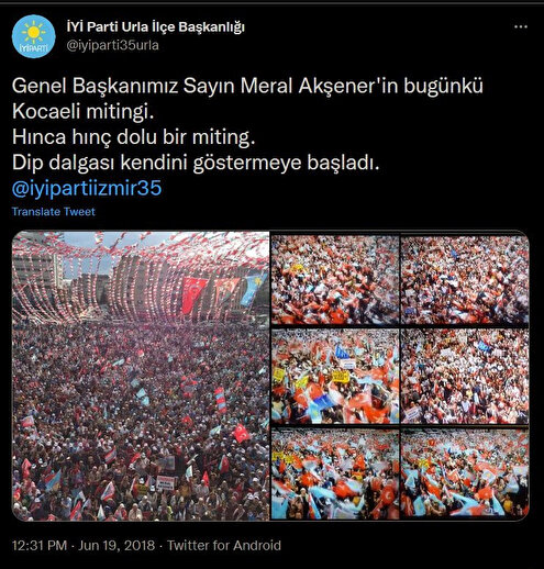 "Genel Başkanımız Sayın Meral Akşener'in bugünkü Kocaeli mitingi. Hınca hınç dolu bir miting. Dip dalgası kendini göstermeye başladı"