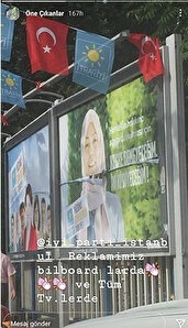 Kurgu olaylara şimdi de reklam afişleri eklendi. İYİ Parti tarafından hazırlanan ve billboardlar ile televizyonlarda gösterilen afişlerde, başı açık bir oyuncuya, başörtüsü taktırılıp öyle yer verildi.