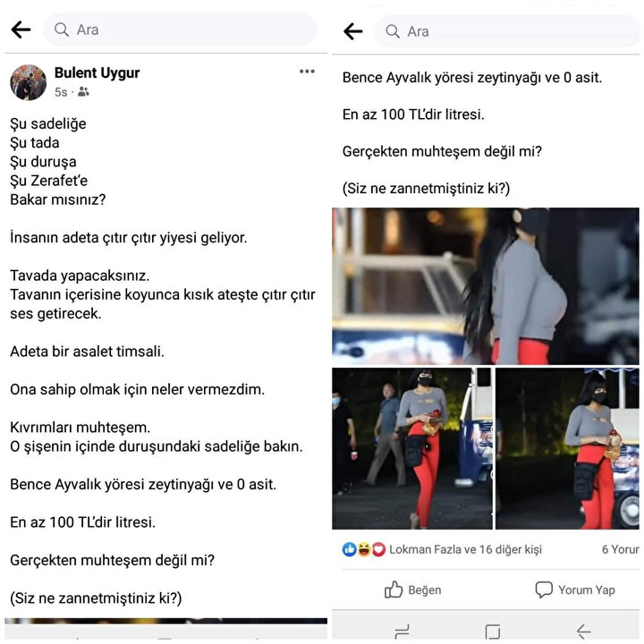 İYİ Parti Grup Başkanvekili Müsavat Dervişoğlu ile yakın ilişki içinde olduğu bilinen Uygur, Facebook'taki paylaşımında kadın cinsiyeti üzerinden yağ fiyatlarını eleştirdi.