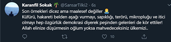 Gece ben uyurken, ustalarından öğrendikleri en iyi işi; Algı ve linç operasyonu başlatmışlar. Sizin hiç bir iftiranız bana yapışmadı, yapışmaz. Sizleri rahatsız etmeye devam edeceğim. Ta ki sapık beyniniz kafatasınıza geri dönene kadar.