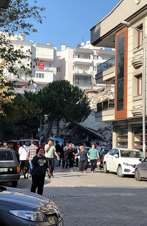 Ege merkezli meydana gelen deprem sonrası İzmir'de bir bina çöktü.