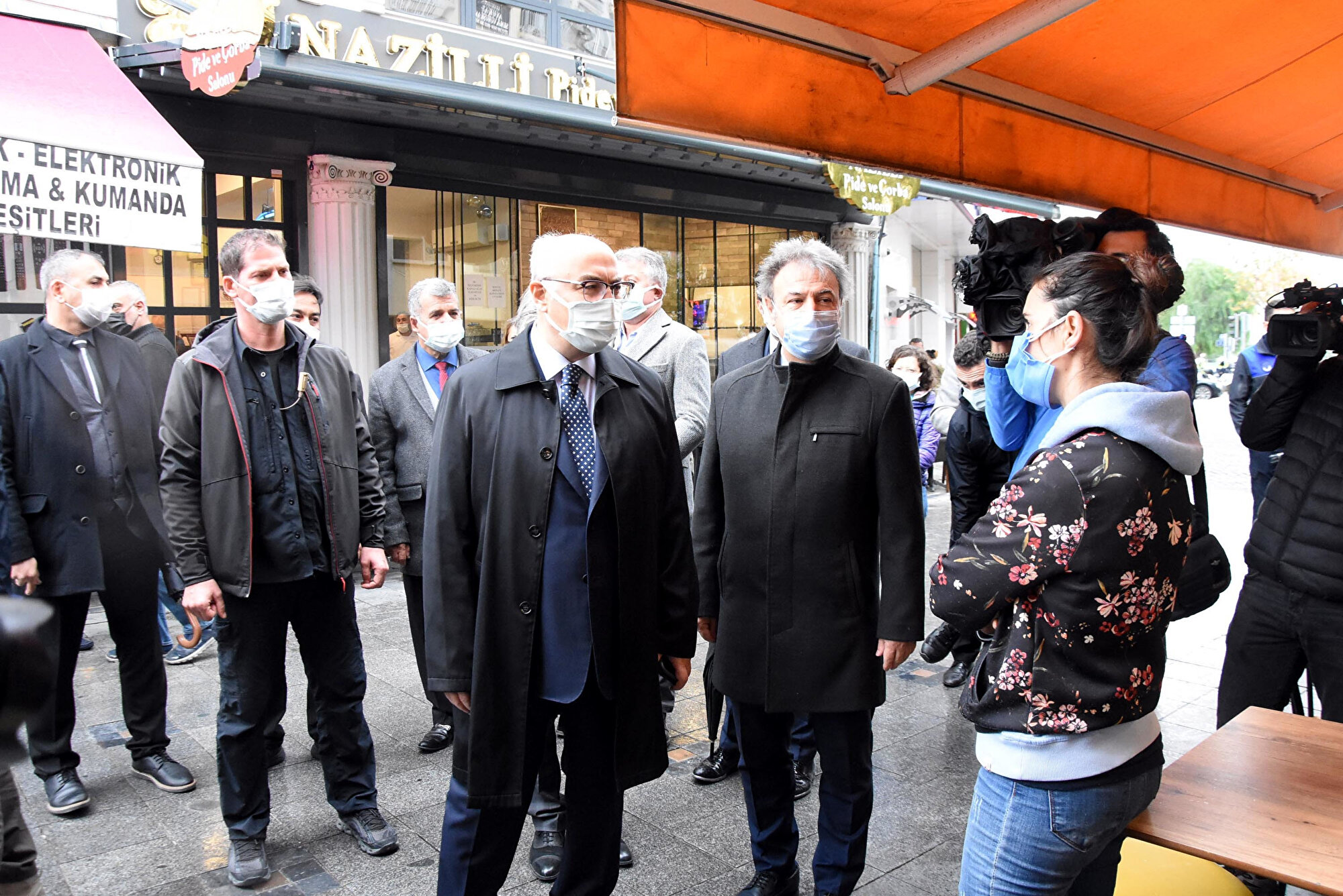 İzmir Valisi Yavuz Selim Köşger, Bornova ilçesinde koronavirüs denetimi yaptı. Esnafı dolaşan ve sorunları dinleyen Vali Köşger, vatandaşlarla da sohbet etti.