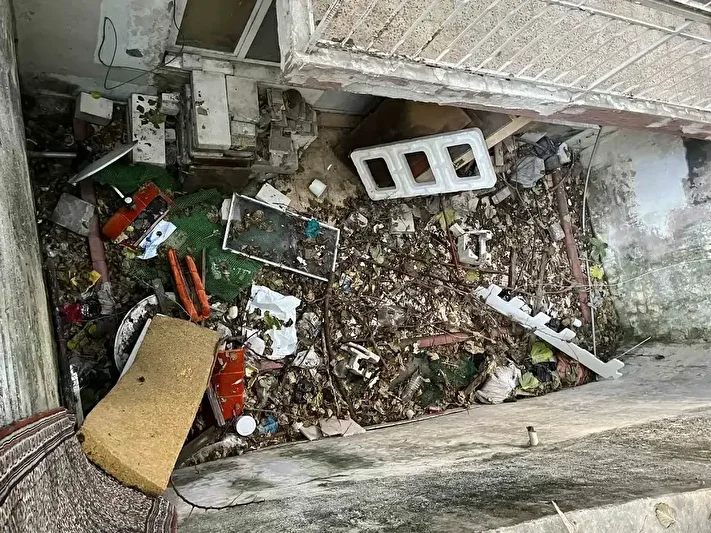 Apartman sakinlerinden Zeki Kuşlar, alt kattaki komşularının evinin yıllardır çöplerle dolu olduğunu öne sürdü. Kuşlar, "Bu alt kattaki komşumuz evi çöp evidir. Biz apartman sakinleri olarak defalarca yardımlaşıp temizleyelim dedik. Gerekli mercilere aramadığım, sormadığım yer kalmadı. Biz hiçbir çözüm bulamadık. Muhtarımıza da gittik. Şimdi burası bir çöp evidir, gördüğünüz gibi. İçeriden çeşitli kokular geliyor, hamam böcekleri ve fareler cirit atmaktadır. Bizim derdimiz çoluğumuzun çocuğumuzun mikrop kapmadan sağlıklı bir şekilde okullarını ve yaşamlarını sürdürmesidir. Ama karşımızda muhatap bulamıyoruz" dedi.