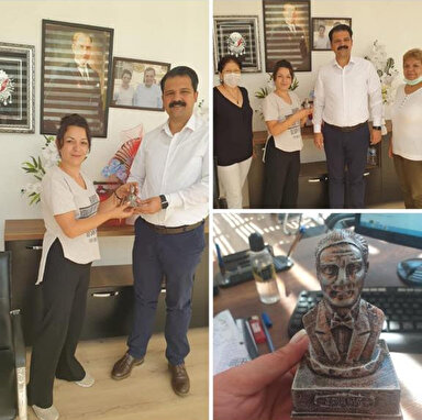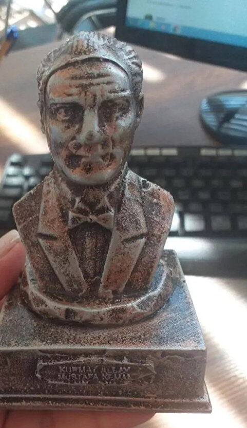 CHP Konak İlçe Başkanı Çağrı Gruşçu, ilçedeki muhtarlara gerçekleştirdiği ziyaretlerde Atatürk heykeli hediye etti. 'Albay Mustafa Kemal' yazılı heykelin Mustafa Kemal Atatürk’e benzemediğini söyleyen AK Parti İzmir İl Başkanı Kerem Ali Sürekli, tepki gösterdi. Konak’ın Ulubatlı Mahalle Muhtarı Şengül Kahramaner’in ziyarete ilişkin fotoğrafları sosyal medya hesabından paylaşmasıyla ortaya çıkan tartışmada, birçok kişi büstün Atatürk’e benzememesi konusunda eleştiride bulundu.