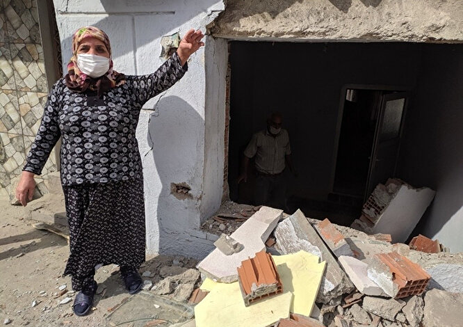 - Kazada evinin duvarı yıkılan Emine Kızılçınar ve Aslan Kızılçınar çifti, evinin bulunduğu sokakta sürekli kaza riski olduğunu söyleyerek çözüm bulunmasını istedi.