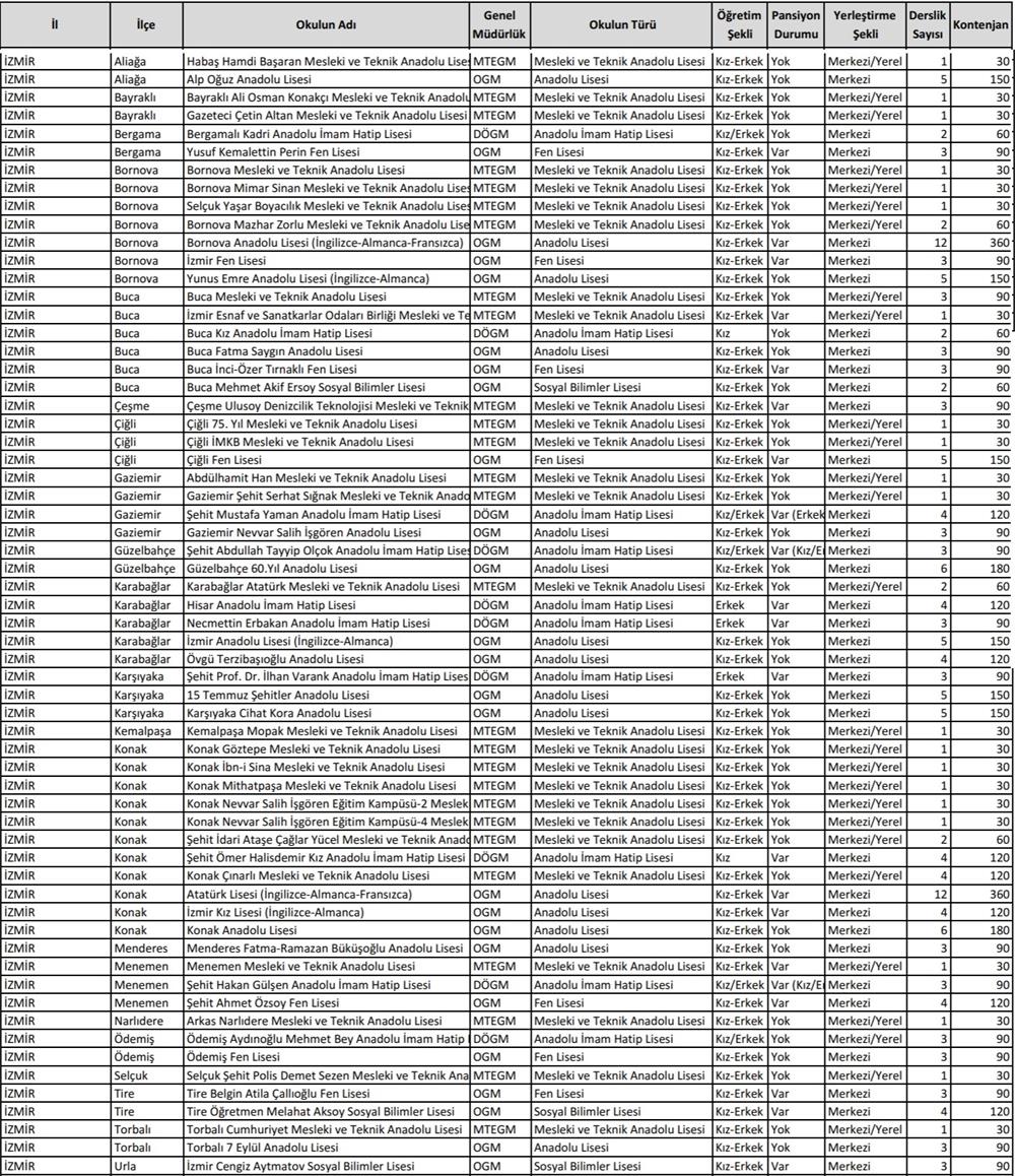 MEB nitelikli okulların listesini açıkladı. Haberimizde İzmir'de merkezi sınavla öğrenci alacak okulları ve kontenjanları bulabilirsiniz.