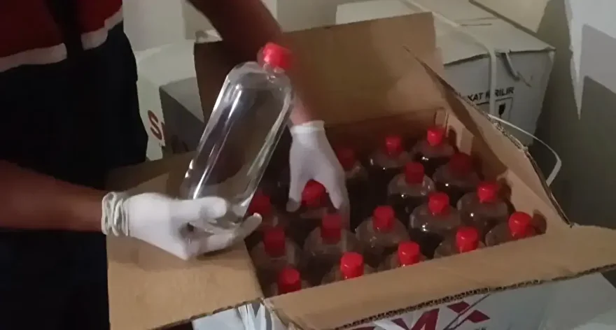 Evde yapılan aramada koli ambalajları içerisine gizlenmiş halde 620 litre etil alkol bulundu.