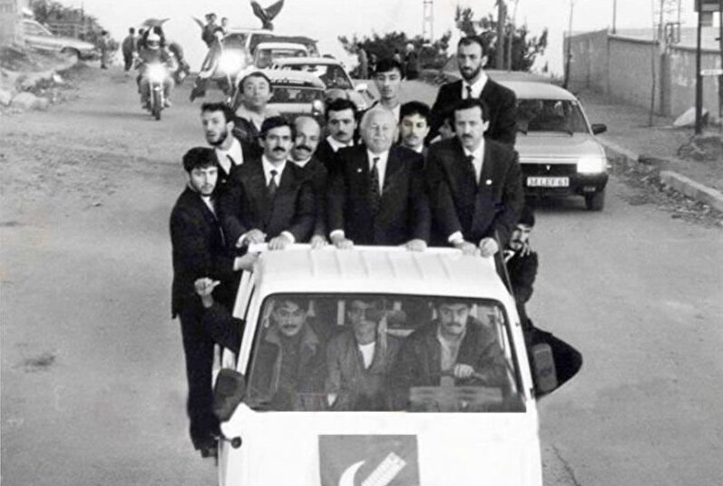 Kamyonet üstünde seçim çalışması kapsamında şehir turu atılırken çekilen fotoğrafta, Milli Görüş lideri ve Refah-Yol Hükümeti’nin Başbakanı Necmeddin Erbakan’ın yanında bulunan isimler yıllar içinde önemli kademelere geldi ve ülke yönetiminde söz sahibi oldu.