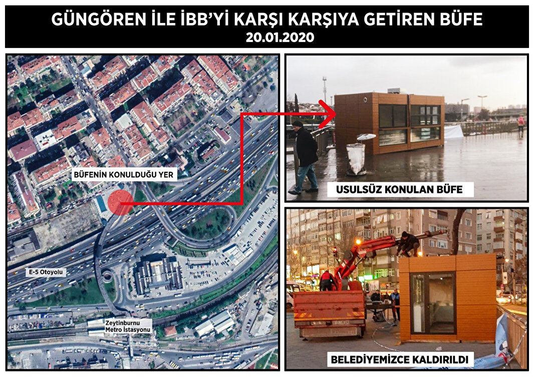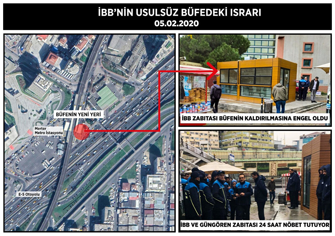 CHP'li Ekrem İmamoğlu'nun başkan olduğu İBB, encümen kararı ve izin belgesi olmadan Merter Metro İstasyonu ve otobüs durağının yanına geçtiğimiz günlerde kaçak bir büfe kurmuştu.