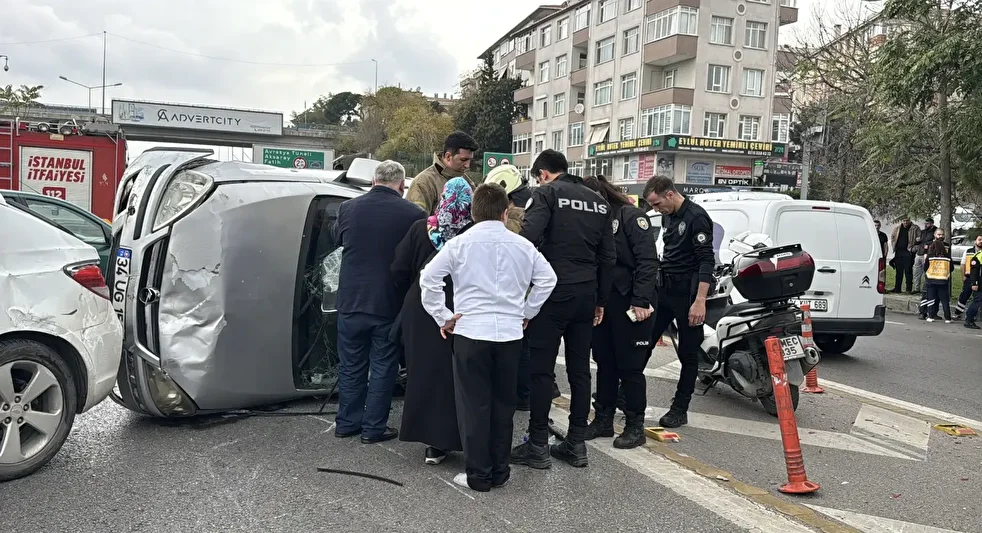 Kazada çarpmanın etkisiyle Ömer C'nin kullandığı otomobil devrildi.