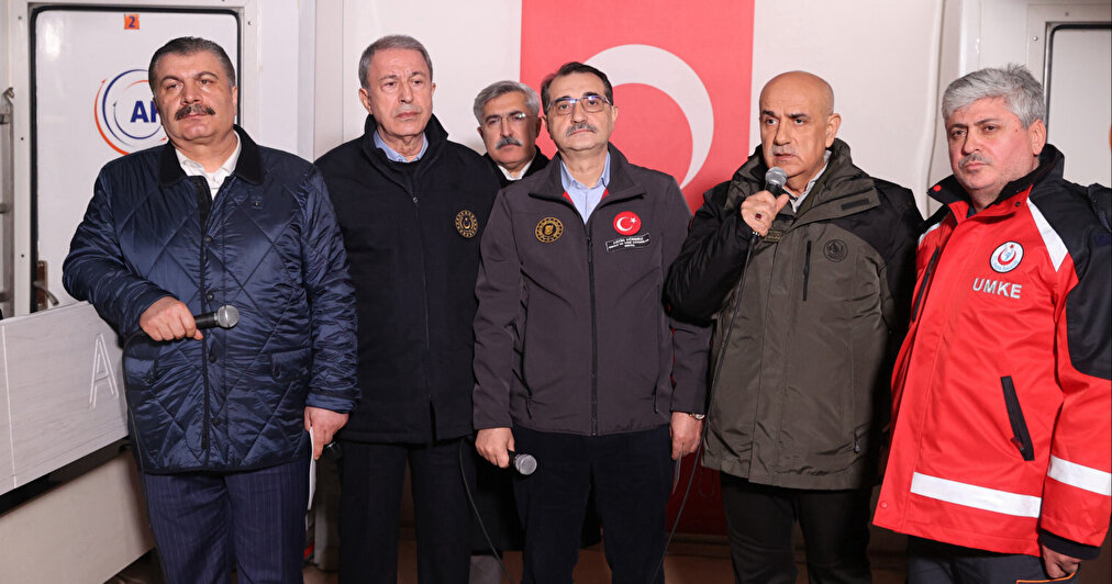 Sağlık Bakanı Fahrettin Koca, Milli Savunma Bakanı Hulusi Akar, Enerji ve Tabii Kaynaklar Bakanı Fatih Dönmez, Tarım ve Orman Bakanı Vahit Kirişci Hatay'daki koordinasyon merkezinde açıklamalarda bulundu.