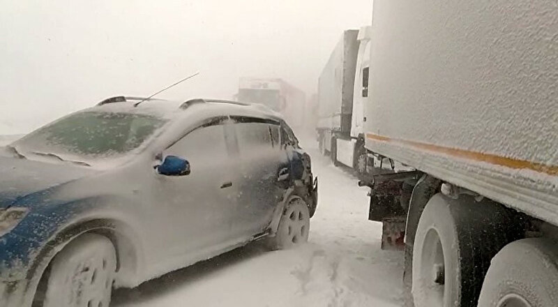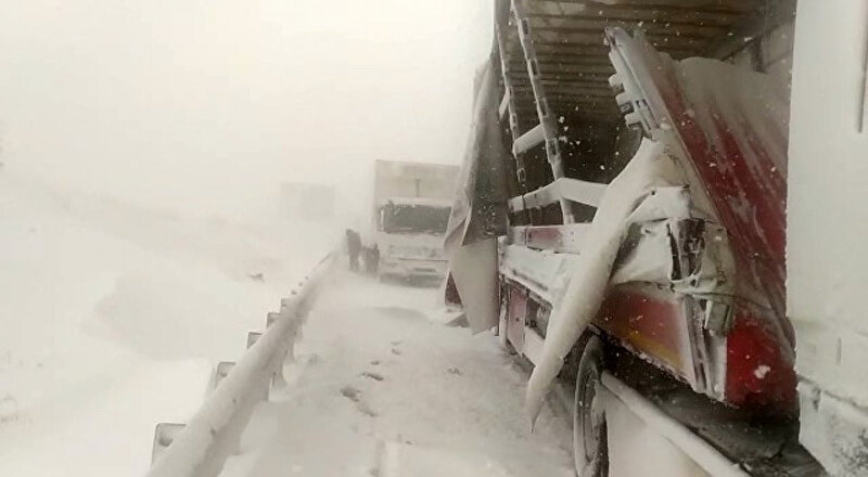 Kar yağışıyla kapanan yolda, 30'dan fazla aracın karıştığı zincirleme kaza meydana geldi.