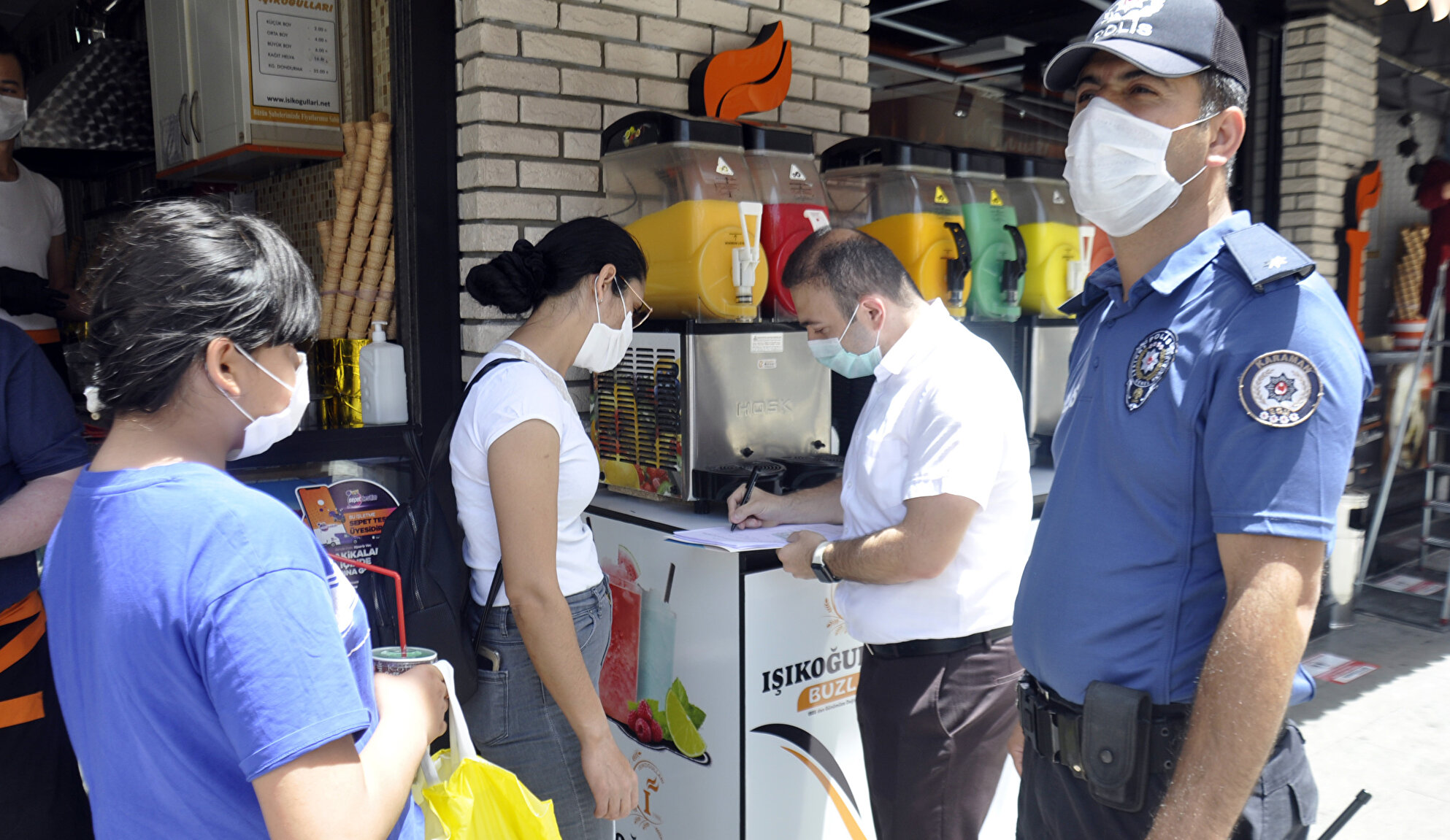 . Maskesiz sokağa çıkanlara tutanak tutan ekipler yazılan tutanakları cezai işlem uygulanmak üzerine Karaman İl Hıfzıssıhha Kuruluna gönderdi.