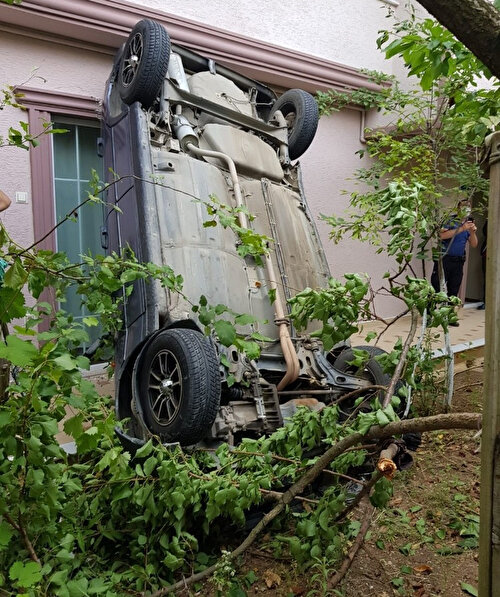 Sabah saatlerinde bahçeyi sulamak için dışarı çıkan ev sahibi Adil Bilgir, gördüğü manzara karşısında şok geçirdi. Evinin bahçesine uçan ve uçtuktan sonra dik bir şekilde kalan otomobili gören Bilgir, ilk şaşkınlığını attıktan sonra durumu polis ekiplerine bildirdi.