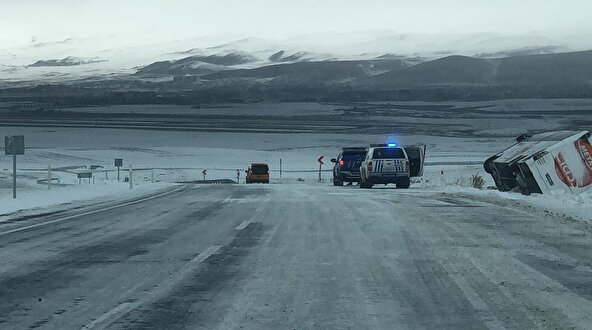 Olay yerinde güvenlik önlemleri alan trafik ekipleri ve jandarma Kars-Iğdır karayolunu kullanan sürücüleri buzlanmaya karşı dikkatli olmaları konusunda uyardı.