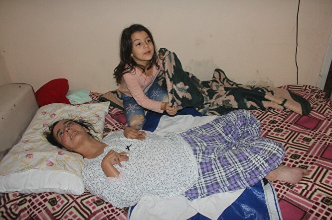 Genç kadının 6 yaşındaki kızı ise annesini bebek gibi sevip onun bir an önce ayağa kalkmasını istiyor.