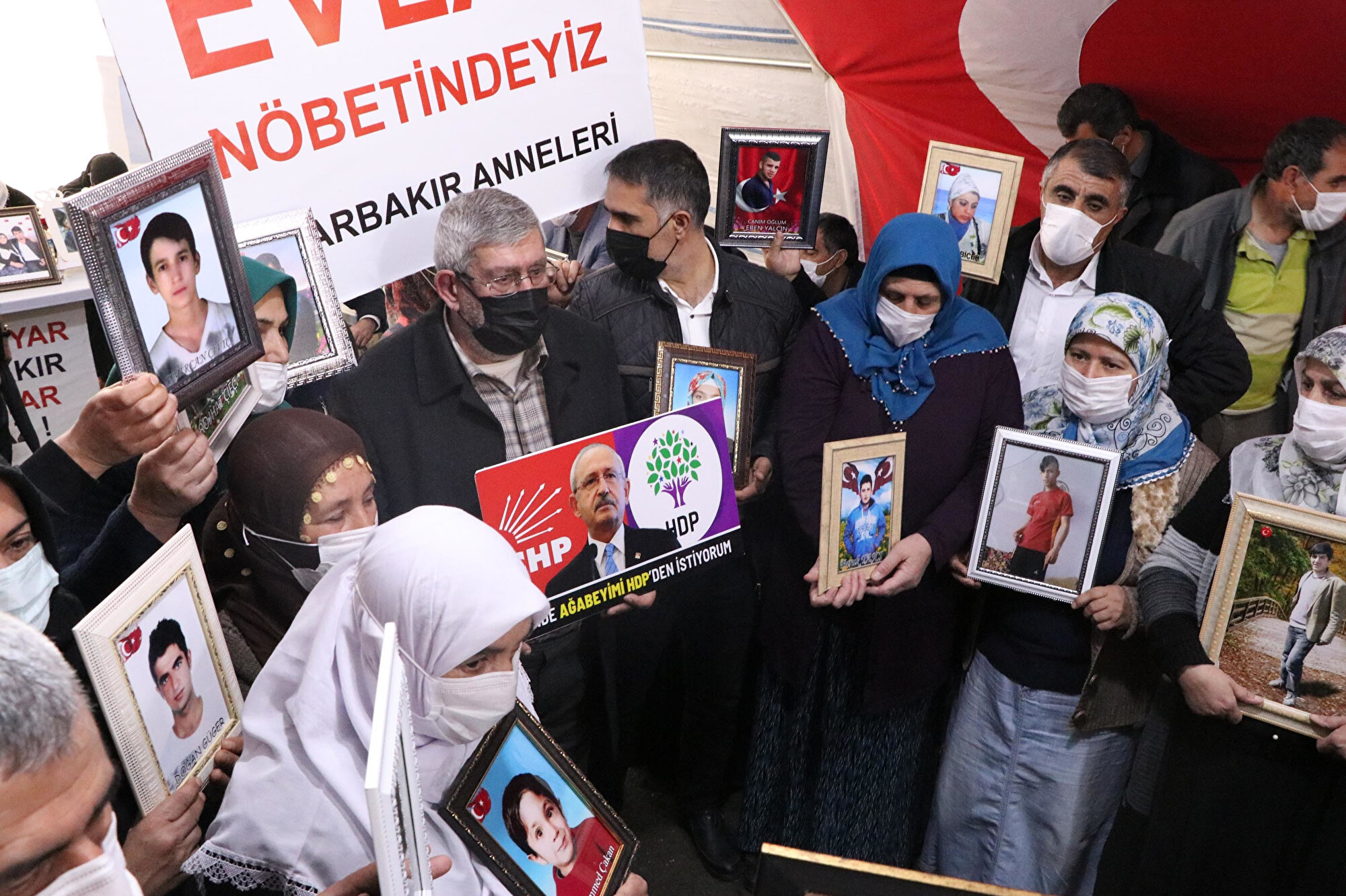 Diyarbakır'da, terör örgütü PKK tarafından kaçırılan çocuklarının bulunmasını isteyen 208 ailenin HDP binası önündeki oturma eylemi, 546'ncı gününe girdi. Aileleri, CHP Genel Başkanı Kemal Kılıçdaroğlu'nun kardeşi, Milli Beka Hareketi Genel Başkan Yardımcısı Celal Kılıçdaroğlu, elinde 'Ben de ağabeyimi HDP'den istiyorum' pankartıyla katılarak ziyaret etti.