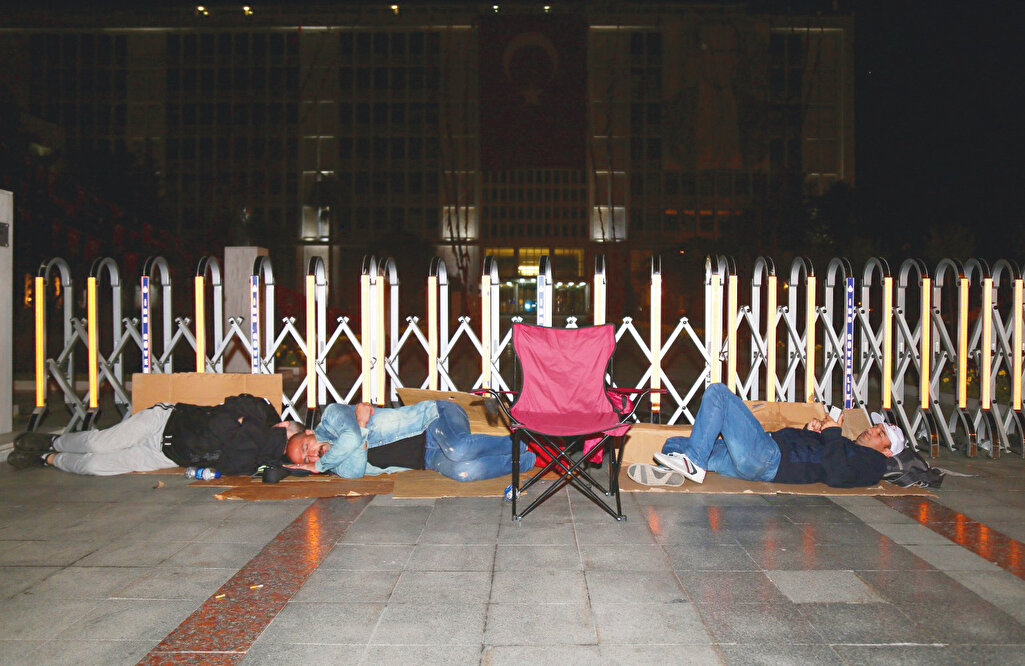 olarak kalabalık bir ekiple önceki geceyarısı saat 02.00’da nöbetteki işçileri ziyaret ettik. İşçilerin bir kısmını 15 Temmuz Şehitleri için oluşturulan anıtın yakınında yere serdiği karton kağıtlar üzerinde uyurken bulduk. Ayakta olanlar ise hem işten çıkarılış süreçlerini anlattı, hem de bazı sendika ve siyasetçilere sitem etti.