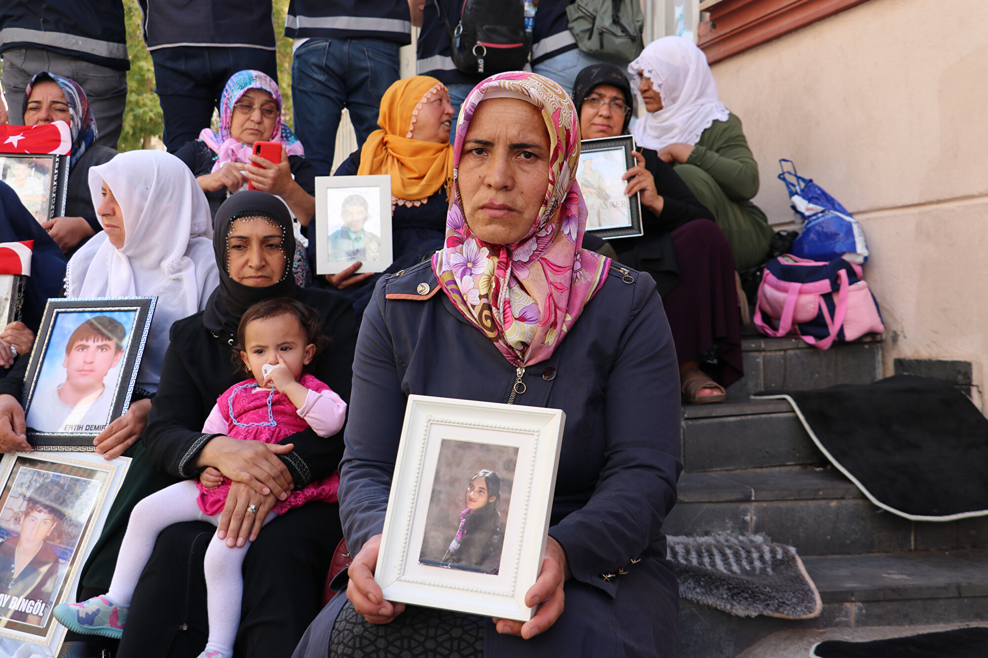 Çocuklarının dağa kaçırıldığı iddiasıyla HDP Diyarbakır İl Başkanlığı önünde oturma eylemi başlatan ailelerin eylemi 31’nci gününde devam ederken, evlat nöbetindeki anne sayısı da her geçen gün artmaya devam ediyor. Son olarak Ağrı’da lise 1’inci sınıftayken terör örgütü PKK mensupları tarafından 2014’te dağa kaçırılan Hayal Demir’in (17) Annesi Süheyla Demir, 1 buçuk yaşındaki kızı Asmin Nisa ile birlikte HDP Diyarbakır il binası önünde çocukları dağa kaçırılan ailelerin eylemine katılarak kızına seslendi.