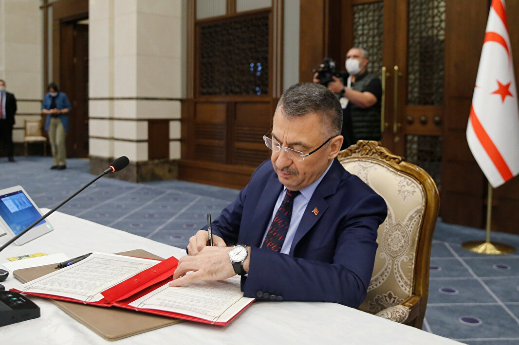Kuzey Kıbrıs Türk Cumhuriyeti (KKTC) arasında İktisadi ve Mali İşbirliği Protokolü, Cumhurbaşkanı Yardımcısı Fuat Oktay ile KKTC Başbakanı Ersin Tatar arasında imzalandı İmza töreninde konuşan KKTC Başbakanı Ersin Tatar, ekonomik olarak güçlü bir kaynağın ülkeye aktarılacağını söyledi. Tatar, "