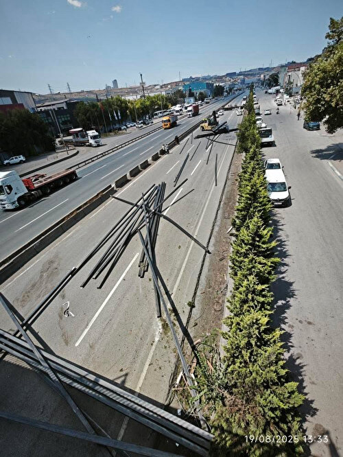 Düşen profiller çevredeki ağaçlara ve korkuluklara zarar verirken, kara yolunun İstanbul istikameti trafiğe kapatıldı.