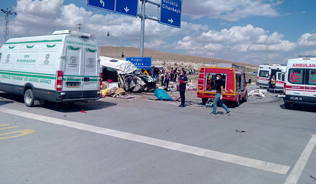 Konya'nın Yunak ilçesinde tır ile tarım işçilerini taşıyan minibüsün çarpışması sonucu ilk belirlemelere göre 6 kişi hayatını kaybetti.
