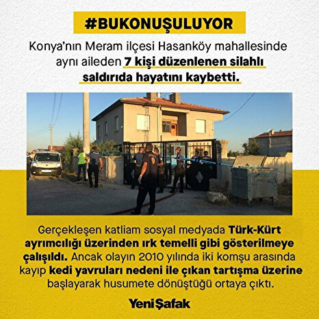 Konya'nın Meram ilçesinde meydana gelen silahlı saldırıda aynı aileden 7 kişinin öldürülmesine ilişkin yeni bir gelişme yaşandı. Türkiye'nin gündemine oturan olayla ilgili adliyeye sevk edilen 14 şüpheliden 10'u tutuklandı.