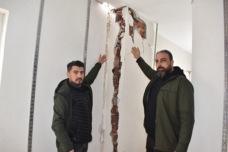"Yaklaşık 3 yıl önce buraya taşındım. Kolonlar vardır. Kolonlarda demir kesilmiş. Kolonların içinden tuğla çıkıyor. Biz bunu hangi mecraya bildirdiysek kimse gelip bize sahip çıkmamış. Burada 18 daire olarak bugüne kadar daha hala komşularımız dışarıda yatıyor. Tamam, bizden daha kötüleri de var ama bizi bu yola sürükleyen insanlar niye yargılanmıyor? Burada 18 daire ve 2 dükkan var. Dükkanlar da daha yeni yapılmış, 1 yıldır yapılmış. Dükkanın bulunduğu yer yani şu an bulunduğumuz yer evdi. Evi dükkana çevirdiler. Buna kim izin vermiş, bu kolonları kim kesmiş, kolonların yerine kim tuğla koymuş? Hiç kimsenin haberi yok. Herkes binasını kontrol etsin. Benim başıma geldi. Kimsenin başına gelmesin. İlk depremde zaten burası bu hale geldi. Herkesin evinde çatlaklar var çünkü bina çökmüş. Kimse bizi sormuyor. Nereye gidiyorsak kapılar suratımıza kapanıyor. Biz bunu gündeme getirdikçe önümüz kesiliyor. Kolonlardan demir kesmek ne demek? Bu, insanların bacağını kesmek demek. Yukarıda oturan ailelerin bacaklarını kesmek demektir