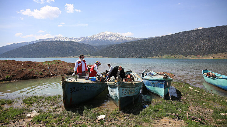 Ulaşımın her ailede bulunan kayıklarla sağlandığı adada yaşayan Yörükler, Kovid-19 salgınının dünyayı etkisi altına aldığı günden bu yana izole bir yaşam sürüyor.