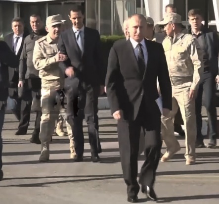Rusya Devlet Başkanı Vladimir Putin’in Lazkiye’deki Himeymim üssüne yaptığı ziyarete karşılayanlar arasında Suriye Devlet Başkanı Beşşar Esed de vardı. Esed’in Putin’e yaklaşma hamlesi bir Rus komutan tarafından engellendi. Rus komutan Esed’i kolundan tutup durdurarak Putin’e yaklaşmasına izin vermedi.