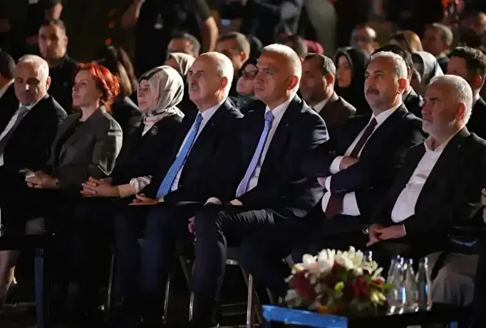 TBMM Başkanı Numan Kurtulmuş ile Bakan Ersoy, konserin ardından sahneye çıkarak sanatçılara teşekkür etti.