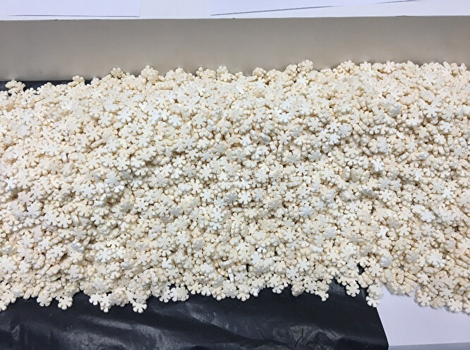 - Zeytinburnu Güvenlik Büro Amirliği’ne bağlı ekiplerin gerçekleştirdiği çalışmalar sonucunda Çırpıcı Mahallesi’nde bulunan metruk bir binada uyuşturucu hap ve çok sayıda silah parçası olduğu tespit edildi. Bina içinde kontrollerini gerçekleştiren ekipler 10 bin 100 adet “Kuru kafa” baskılı ve 14 bin 800 adet kar tanesi şeklinde uyuşturucu hap ele geçirdi.