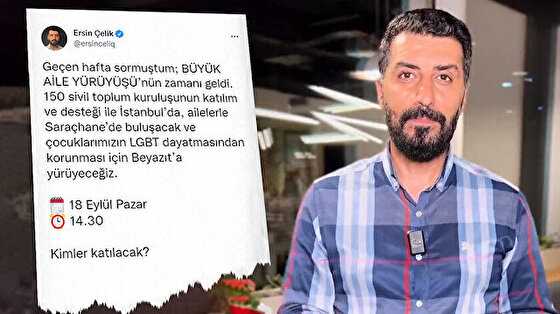LGBT'ye karşı büyük bir mücadele veren, gençlerin ve çocukların bu tuzaktan korunması için çaba sarf eden Yeni Şafak yazarı Ersin Çelik, sosyal medya hesabından yürüyüş çağrısında bulunmuştu.