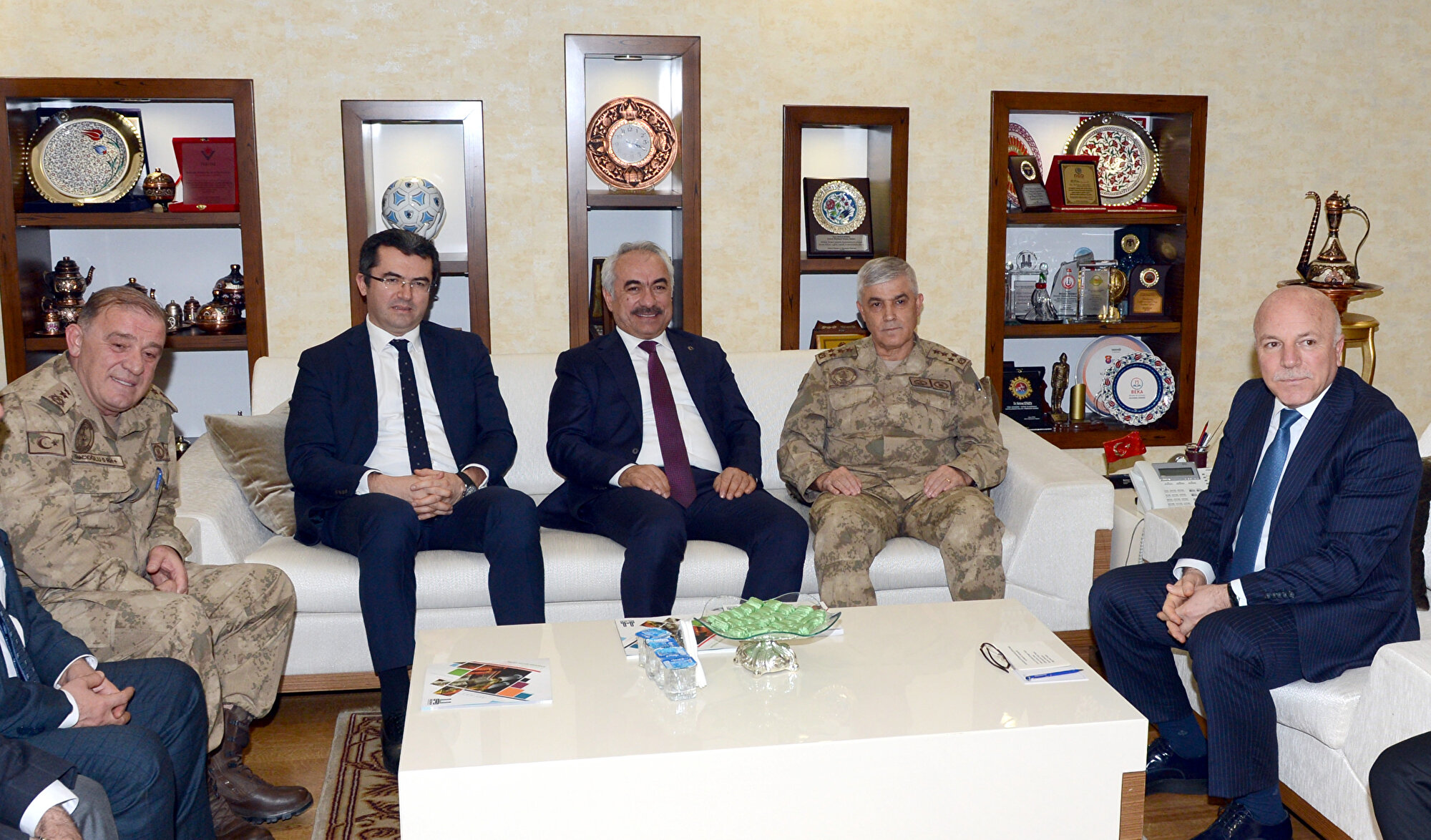 İçişleri Bakan Yardımcısı Mehmet Ersoy ve Jandarma Genel Komutanı Orgeneral Arif Çetin, Erzurum'daki inceleme ve gezileri kapsamında Büyükşehir Belediye Başkanı Mehmet Sekmen'i makamında ziyaret etti.