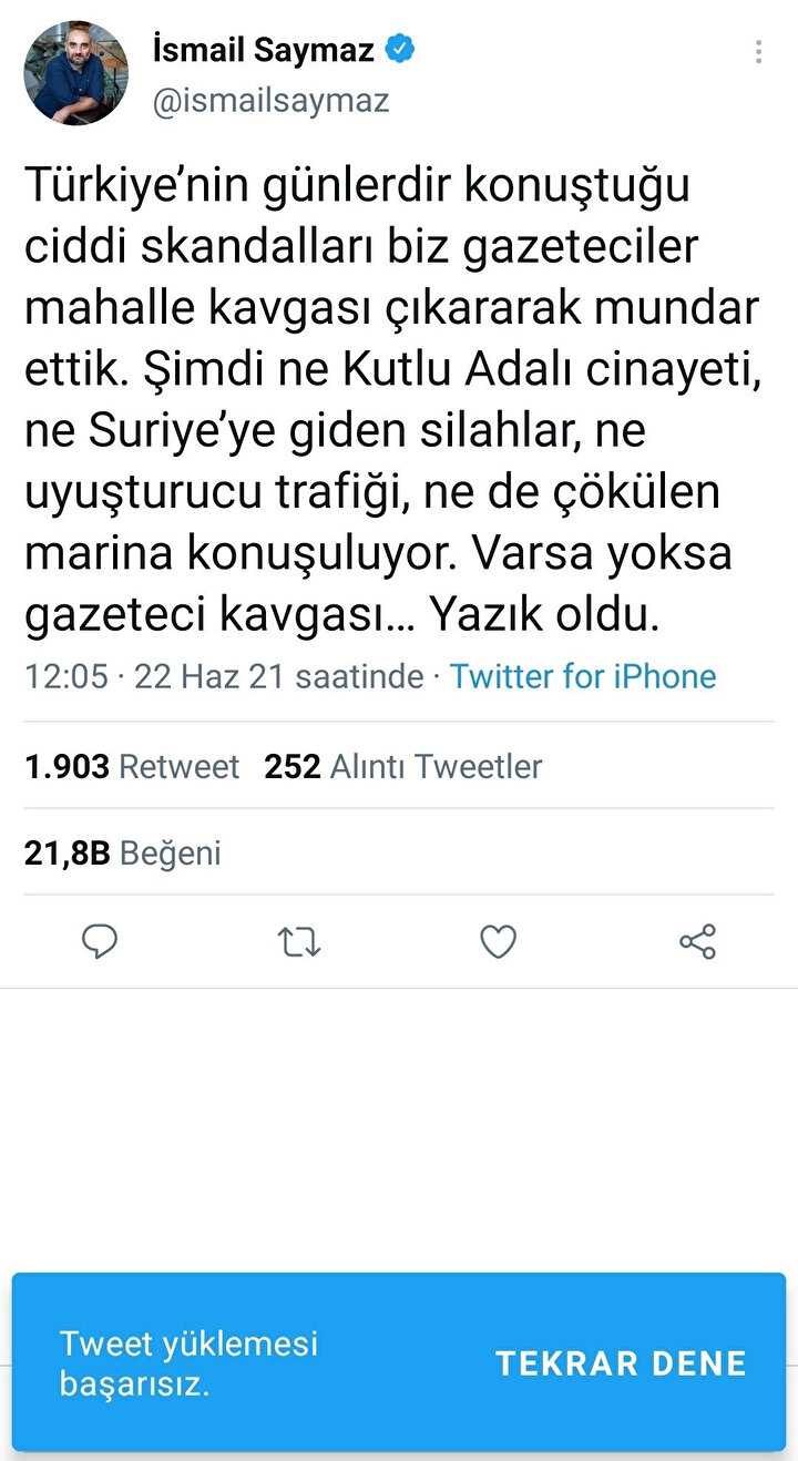 Sözcü gazetesi yazarı İsmail Saymaz, Uğur Dündar ve Yılmaz Özdil arasındaki atışmaya ilişkin sosyal medya hesabından yaptığı “Türkiye’nin günlerdir konuştuğu ciddi skandalları biz gazeteciler mahalle kavgası çıkararak mundar ettik. Varsa yoksa gazeteci kavgası... Yazık oldu.” şeklindeki paylaşımını bir süre sonra silmek zorunda kalmıştı.
