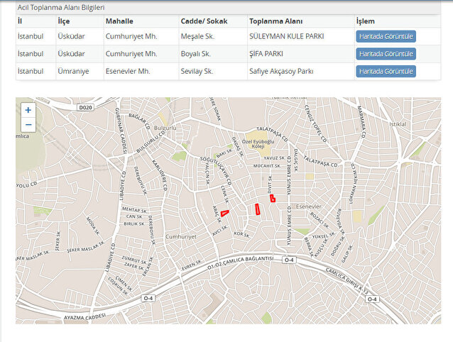 Son günlerde Türkiye'de bir çok ilde ardı ardına yaşanan depremlerin ardından bugün de İstanbul'da meydana gelen 5.8 büyüklüğündeki deprem paniğe neden oldu. Deprem sonrası yaşanabilecek bir afet sırasında insanların mahallelerinde toplanabilecekleri alanlar e-devlet üzerinden tek tek işaretlenmiş şekilde vatandaşların bilgisine sunuluyor. Vatandaşlar istediği bölgeyi ve mahalleyi seçtikten sonra evine veya iş yerine en yakın toplanma alanını görebiliyor.